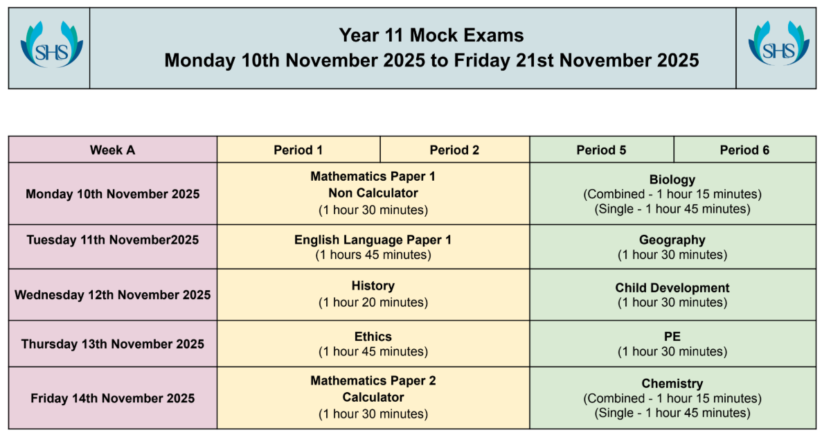 Year 11 Mock Exams - Mon 10/11/25 - Fri 21/11/25